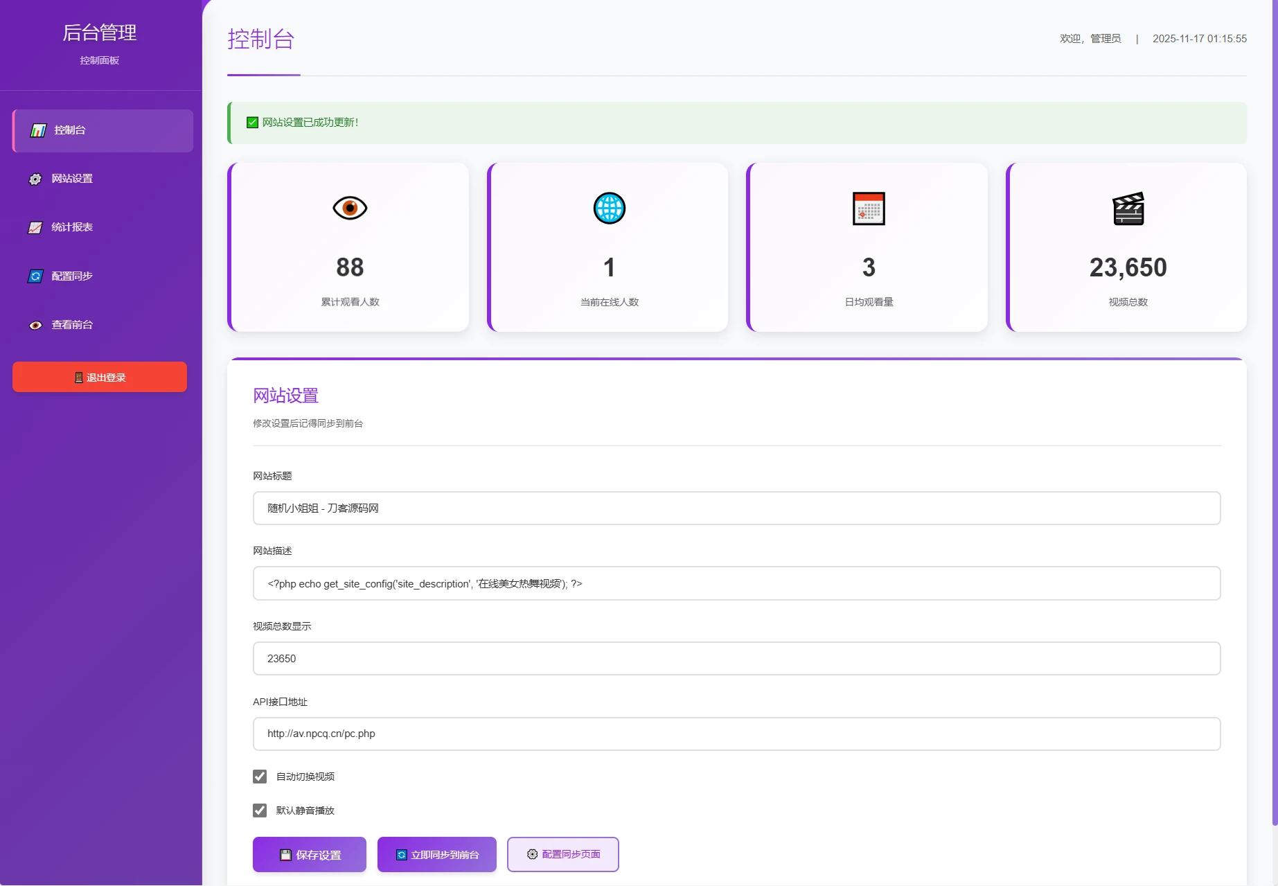 4.0 版本更新了后台功能,可以自行修改接口,修改网站信息,后台统计报表等